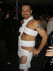 The second guard then begins whining for attention, and Merry realizes it is Rhys, one of her favorite people at court, or rather her “third-favorite” because she doesn’t trust him as she does Barinthus or Galen. Rhys is on the short-side of sidhe, about 5’6″, with waist-length wavy white hair. He is the most muscular of all the guards, however he’s not quite as strong as Doyle, as his muscles are more for show. His eyes are a brilliant shade of blue… well, his eye. Half of his face is covered in scars and he is missing an eye, so he always wears an eyepatch.